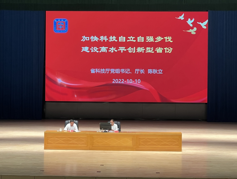 10月10日下午,厅党组书记、厅长陈秋立应邀到省委党校,以“加快科技自立自强步伐 建设高水平创新型省份”为主题作专题辅导报告,辅导报告会由省委党校马郁葱副校长主持。