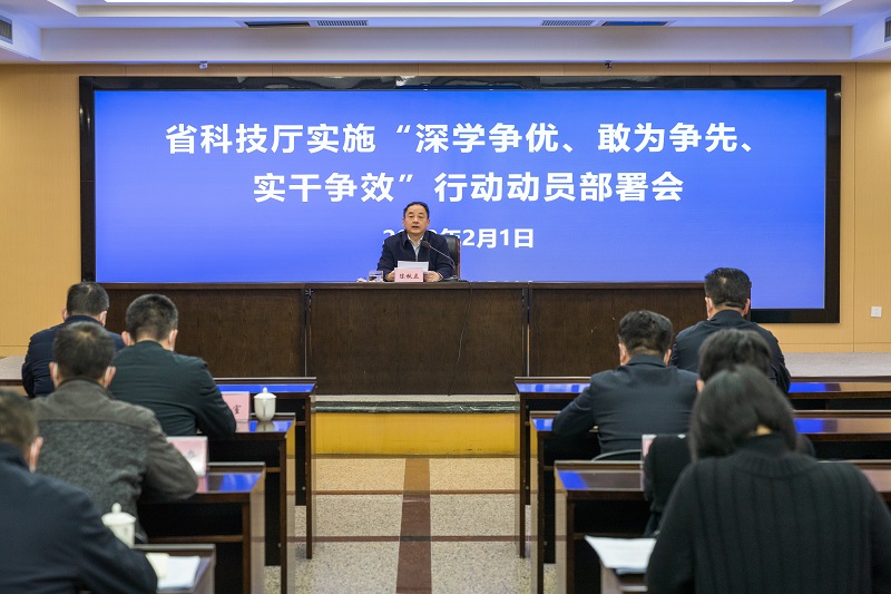 陈秋立强调,要把实施“深学争优、敢为争先、实干争效”行动作为贯穿全年的重点工作来抓,切实做到思想上重视、态度上坚决、行动上自觉。分管厅领导和各处室负责人既要当好指挥员,还要当好战斗员,对重点任务亲自上手亲自抓,细化任务书、作战图、时间表,全力以赴抓好落实。要对行动情况、工作成效进行多角度动态化宣传,动员全省科技系统动起来、比起来,营造比学赶超、争先奋进的浓厚氛围,确保“深学争优、敢为争先、实干争效”行动取得较好成效。