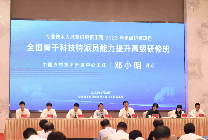 本次培训班是人力资源社会保障部专业技术人才知识更新工程2023年高级研修项目,为期5天,旨在深入学习习近平新时代中国特色社会主义思想,贯彻落实习近平总书记关于科技特派员制度的系列重要指示批示精神,落实党的二十大对人才强国战略和乡村振兴战略的新部署新要求,提高全国骨干科技特派员服务乡村振兴、建设农业强国的本领,把主题教育成果落到实处。培训内容包括“三农”政策解读、科技前沿动态、成果转化方法、技术成果推介等多个专题讲座和典型案例现场教学,并邀请优秀科技特派员代表分享交流。