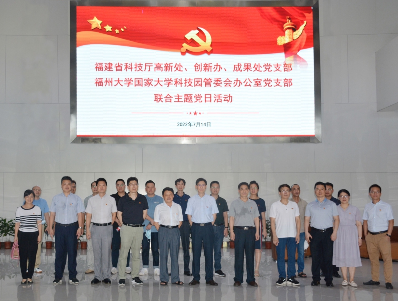 7月14日下午,永利娱乐城 高新处、创新办、成果处党支部与福州大学国家大学科技园管委会办公室党支部联合开展“忠诚在心、岗位奉献”主题党日活动。永利娱乐城 党组成员、副厅长周世举和福州大学党委副书记张星以普通党员身份与支部党员一同参加活动。