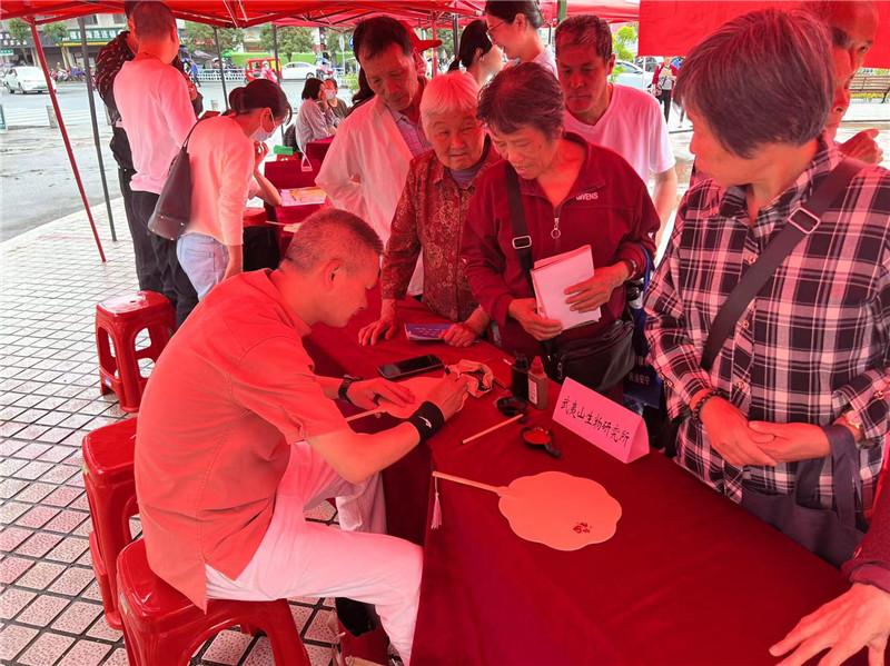另一场活动则在市中心的广场上展开——生物研究所在活动现场设置了宣传摊位,向过往行人分发了大量宣传册。这些宣传册详细介绍了生物多样性保护的重要性以及每个人可以采取的实际行动。同时,为了增加活动的趣味性和互动性,生物所还特别准备了大量精美的纸扇,纸扇由所工作人员用毛笔现场书写科普知识点,让参与者在欣赏艺术品的同时,也能学习到实用的科普知识。