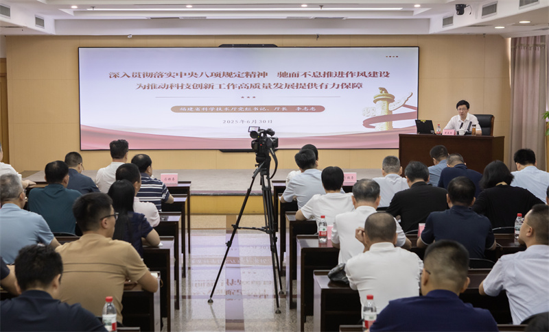 举办深入贯彻中央八项规定精神学习教育专题党课报告会,厅党组书记、厅长李志忠同志以“深入贯彻落实中央八项规定精神驰而不息推进作风建设为推动科技创新工作高质量发展提供有力保障”为主题,为厅系统党员干部讲授学习教育专题党课。在家厅领导,驻厅纪检监察组、厅机关全体党员、干部,在榕各直属单位党政主要负责人参加会议。