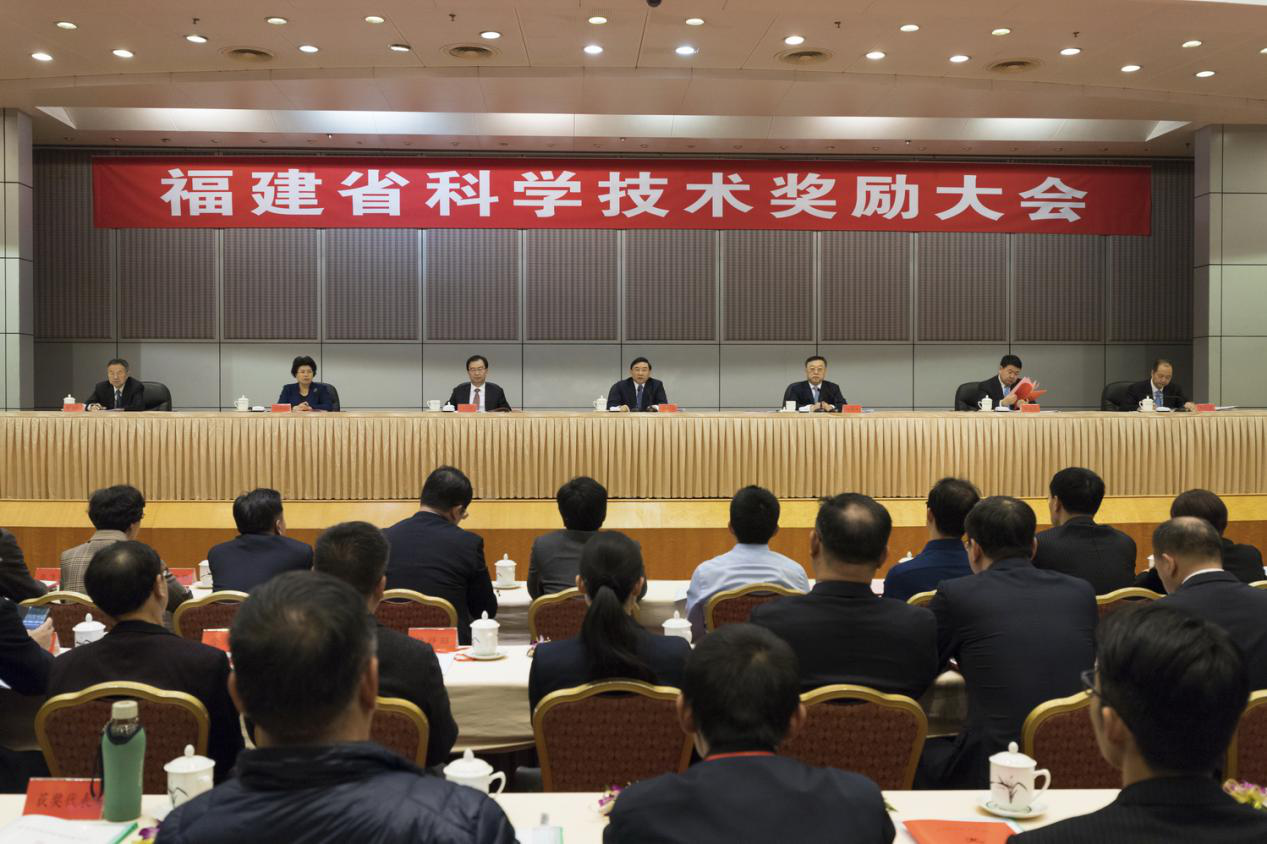 12月5日下午,福建省科学技术奖励大会在福建会堂6层国际厅举行,会议表彰了2017年度福建省科学技术奖获奖者、2017年福建省专利奖获奖者、2017年度国家科学技术奖我省获奖者和第十八届、十九届中国专利奖我省获奖者。省委书记于伟国出席大会并讲话,省长唐登杰主持会议,省领导王宁、梁建勇、吴洪芹、郑新聪、薛卫民出席会议。