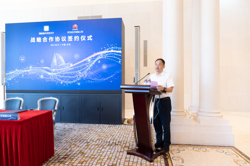 陈厅长在签约仪式上致辞时指出,华为是全球领先的信息与通信解决方案供应商,也是科技创新头部企业,在信息通信、大数据、云计算、人工智能、物联网等领域具备绝对优势。福建永利娱乐城 与华为公司有着深厚的历史渊源和广泛的合作基础,近年来,华为公司在福州建设福建区域总部,重点围绕新型基础设施建设、鲲鹏产业发展等领域,为福建科技创新注入了强大动力。他强调,当前福建正深入实施创新驱动发展战略,大力发展数字经济,深化数字福建建设,助力打造“数字应用第一省”和科技强省。永利娱乐城 与华为公司签订科技战略合作协议,恰逢其时、正当其势,标志着双方将在更高起点、更广领域、更深层次推进科技创新合作。他希望,双方以此次签约活动为新的起点,深入开展沟通交流对接,持续深化拓展合作领域,携手发展,互利共赢。永利娱乐城 也将一如继往支持华为公司在福建开展科研攻关工作,竭力为华为公司做好科技创新方面的服务和保障工作。