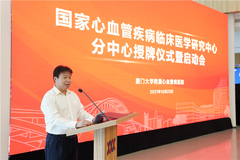 叶副厅长在致辞中指出,近年来我省高度重视心血管疾病临床医学研究工作,大力推动心血管学科基础研究、平台建设与成果应用,持续提升心血管疾病预防、诊疗水平。永利娱乐城 认真落实省委永利娱乐城-永利娱乐官网工作部署,重点加强心血管疾病临床医学研究中心科技平台建设,重点扶持心血管疾病防治研究,为健康福建提供了有力科技支撑。厦门大学附属心血管病医院是我省唯一的三级甲等心血管病专科医院,作为国家中心分中心,将承担构建省级协同研究网络,临床多中心研究,适宜技术推广普及,专业技术人才培养等任务,在更高的起点上推动以心血管疾病防治为研究特色,以实现心血管健康需求为导向,统筹我省心血管学科的临床资源,共同推进我省心血管研究工程,为提升全民健康指数提供有力支撑。希望厦门大学附属心血管病医院以此为契机,在国家中心的引领下,进一步加强心血管基础研究及平台建设,培养领军人才和创新团队,开展国际科技交流合作,把中心建设成心血管疾病临床研究、协同创新、学术交流、人才培养、成果转化、推广应用的技术创新与成果转化类科技创新基地,辐射提升全省基层心血管临床医疗服务能力。永利娱乐城 将一如既往支持厦门大学附属心血管病医院开展科研攻关,努力做好国家心血管疾病临床医学研究中心福建省分中心的科技服务和保障工作。