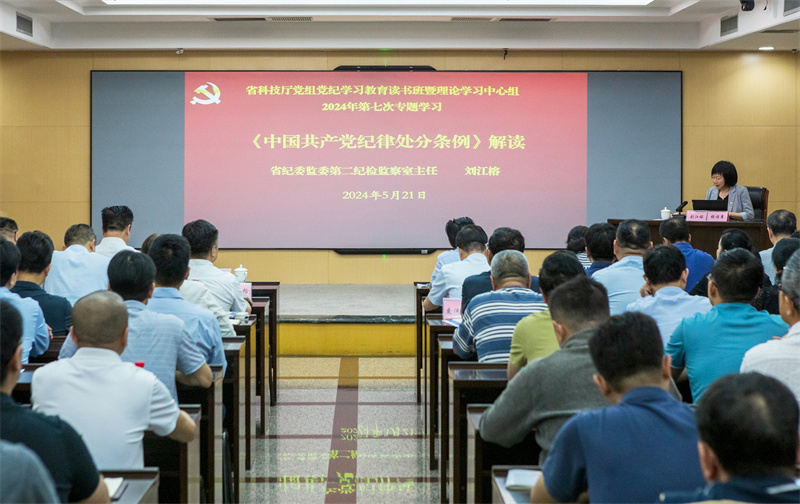 本期读书班邀请省纪委监委第二纪检监察室主任刘江榕同志宣讲解读《中国共产党纪律处分条例》,从《条例》的历史沿革、现行《条例》的主要内容、抓好《条例》的贯彻执行等三个方面引导党员干部全面领会、严格遵守《条例》;组织集中观看中央纪委国家监委宣传部和中央广播电视总台联合摄制的反腐纪录片《持续发力纵深推进》(第一、二集),并围绕“学习贯彻《条例》,严守组织纪律”开展党组理论学习中心组交流研讨,进一步推动党员干部带头学纪、知纪、明纪、守纪,为加快建设高水平创新型省份、实现科技自立自强,奋力推进新时代科技创新工作高质量发展提供坚强纪律保障。