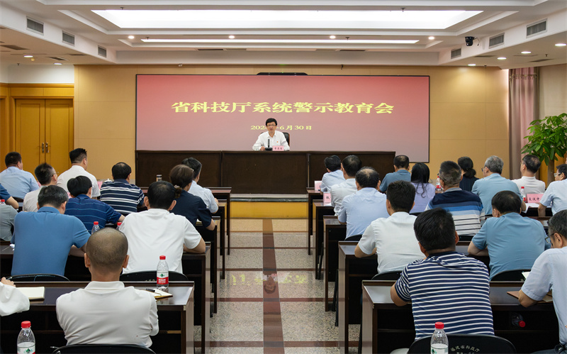 召开警示教育会,通报、剖析违纪违法典型案例,深化以案促学、以案促改、以案促治,进一步推动广大党员干部学纪、知纪、明纪、守纪,为加快建设高水平创新型省份、实现科技自立自强提供有力纪律保障。厅党组书记、厅长李志忠主持会议并讲话。