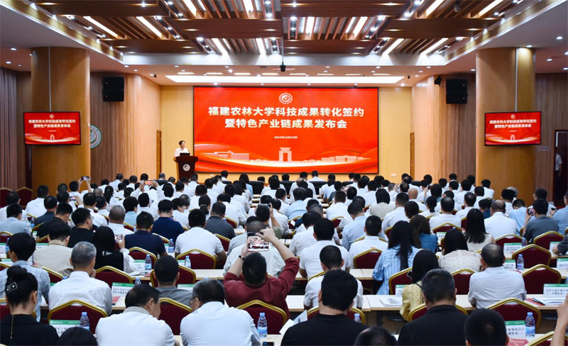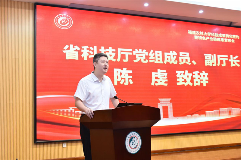 10月20日上午,福建农林大学科技成果转化签约暨特色产业链成果发布会在福州召开,来自省直部门、地方政府和企业的200余位代表参加大会。永利娱乐城 党组成员、副厅长陈虔出席活动并致辞。