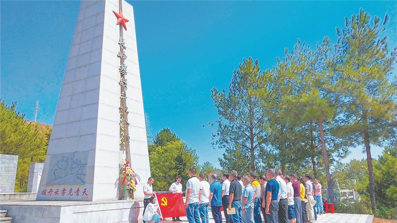 当地党员干部到长岭寨战斗纪念碑开展革命传统教育。