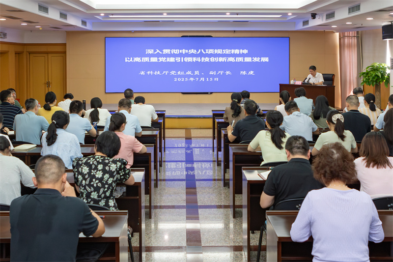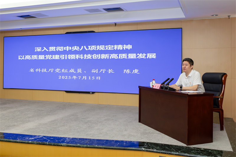 7月15日,厅党组成员、副厅长陈虔以《深入贯彻中央八项规定精神以高质量党建引领科技创新高质量发展》为主题,为分管处室、单位党员干部讲授专题党课。