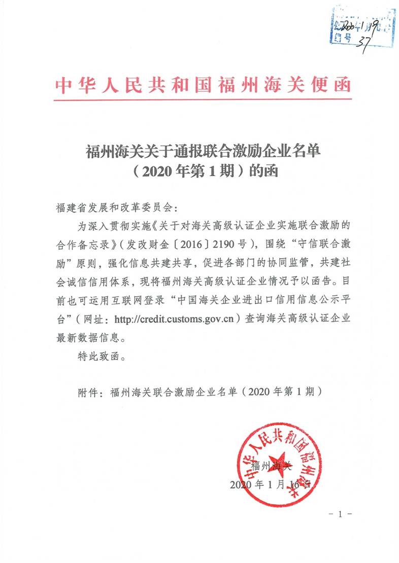福州海关联合惩戒企业名单(2020年第1期)的函