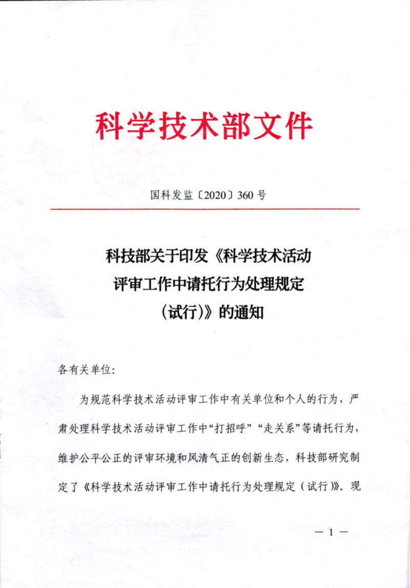 科技部关于印发《科学技术活动评审工作中请托行为处理规定(试行)》的通知